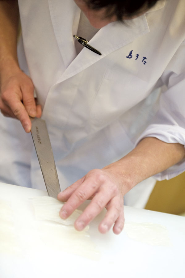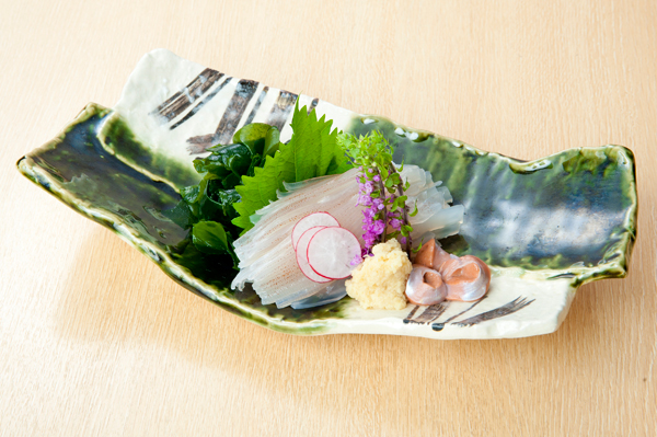 活物のなかでもイカは特に鮮度が命。 島うたでは毎朝新鮮なイカを市場より仕入れ、 ご注文をいただいたときに店内の水槽より お客様にご提供しています。 スッと華麗な包丁さばきで 一番おいしい状態をお召し上がりいただけます。